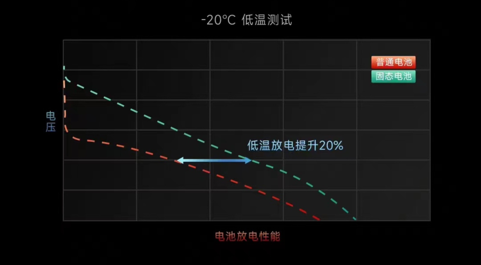 此次小米研發的固態電池另一項好處是低溫下性能提升。傳統手機電池中,由于液態電解液的特性,其在低溫下粘度會急劇上升,鋰離子輸送能力受到阻礙造成導鋰性能迅速下降60%。而根據小米在實驗室環境下進行的測試,其固態電池在-20°C下放電性能提升20%以上,即便在高緯度地區也能無懼嚴寒盡情使用。