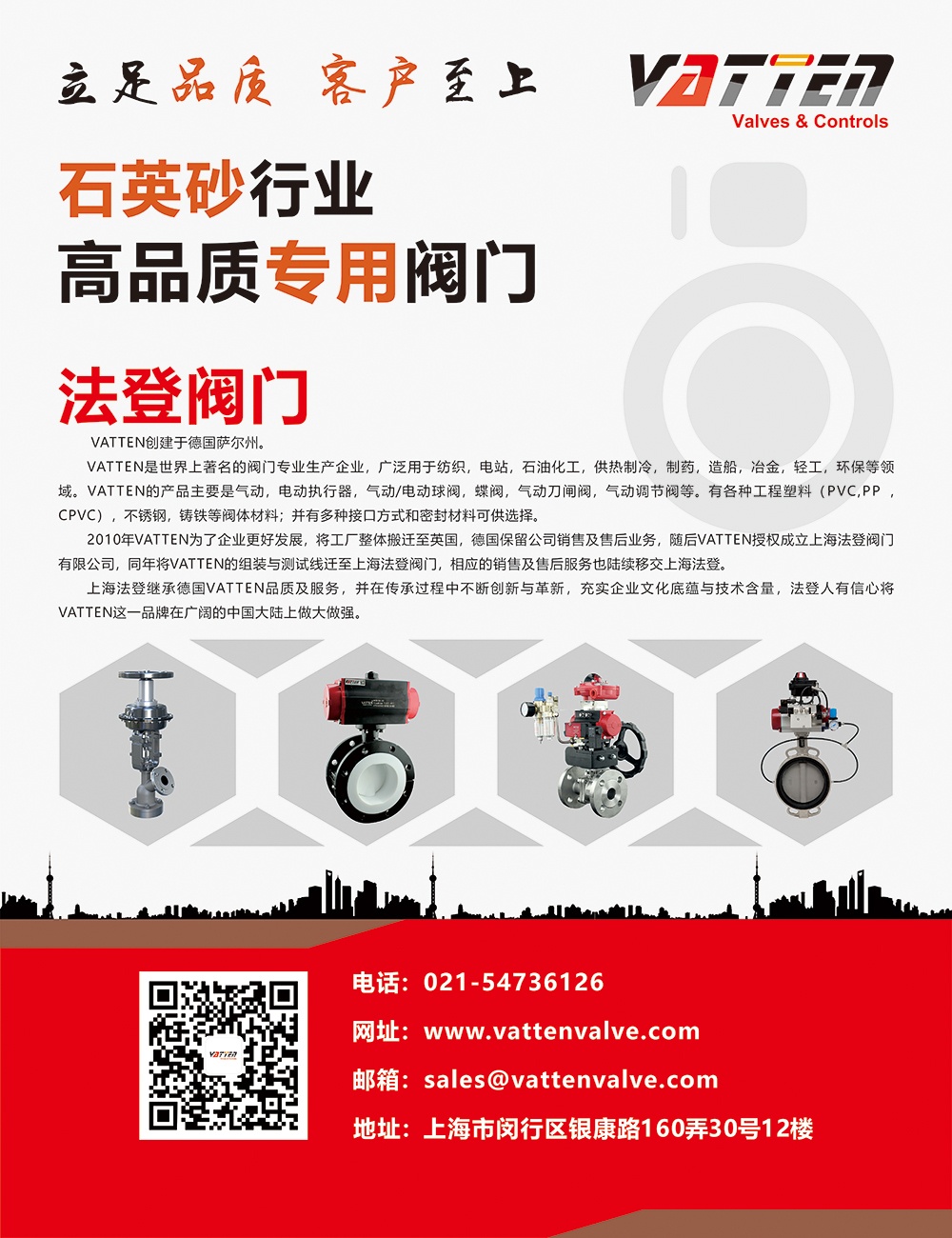 VATTEN創建于德國薩爾州。VATTEN是世界上著名的閥門專業生產企業,廣泛用于紡織、電站、石油化工、供熱制冷、制藥、造船、冶金、輕工、環保等領域。VATTEN的產品主要是氣動,電動執行器、氣動/電動球閥、蝶閥、氣動刀閘閥、氣動調節閥等。有各種工程塑料(PVC,PP , CPVC),不銹鋼、鑄鐵等閥體材料;并有多種接口方式和密封材料可供選擇。