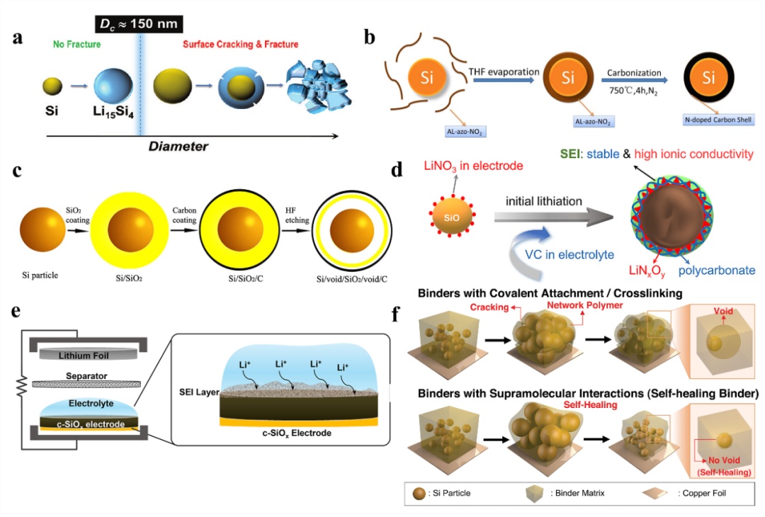 圖1.應對鋰離子電池Si負極體積效應和不穩定SEI挑戰的策略