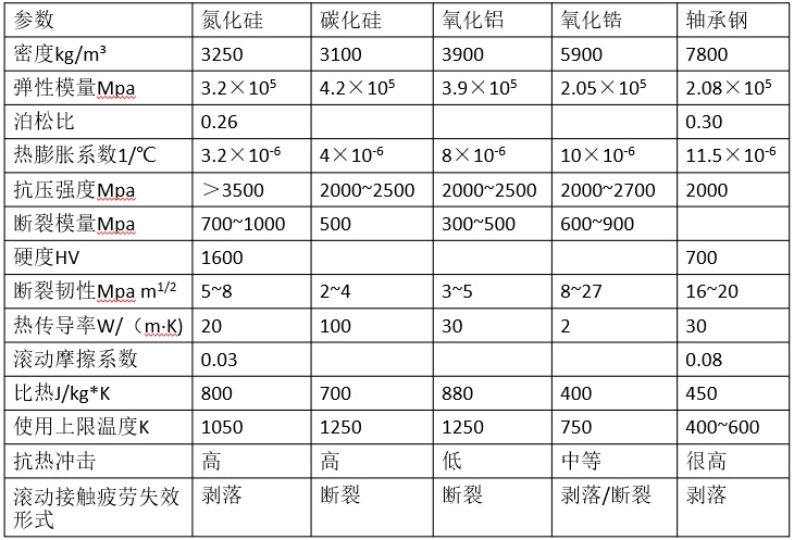 材料方面,常見的陶瓷軸承材料有氧化鋯,氮化硅,碳化硅三種。其中,氮化硅陶瓷被認為是制造陶瓷軸承的最佳材料。其具體特征如下: