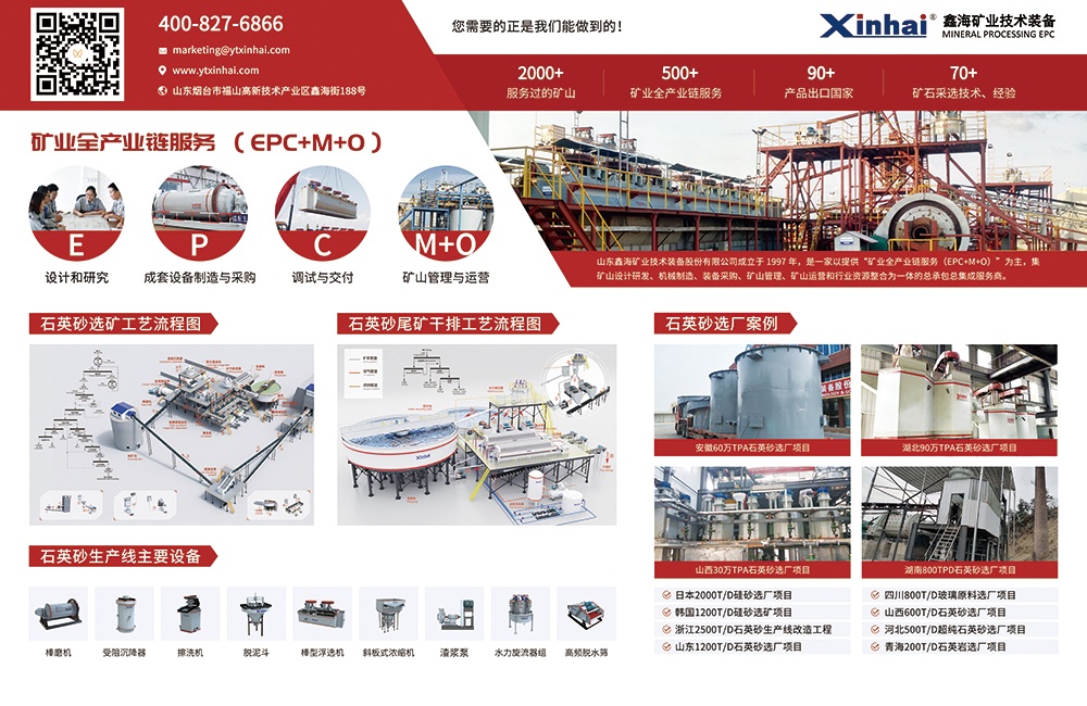 山東鑫海礦業技術裝備股份有限公司成立于1997年,前身為煙臺鑫海礦山機械有限公司,是一家以提供"礦業全產業鏈服務(EPC+M+O)"為主,集設計和研究 - 成套設備制造與采購 - 調試和交付 - 礦山管理 – 礦山運營和行業資源整合為一體的股份制高新技術企業。公司的業務范圍遍及世界各地,迄今已完成了2000 多座礦山設計和研究、設備供應項目,其中包含500 多個礦山EPC+M+O工程項目,具有70 余種礦石的采選技術和經驗,申請了多項專利,在多個國家設立了海外辦事處,產品出口九十多個國家和地區。