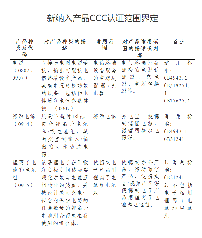 其中,對于電子電器產品使用的鋰離子電池和電池組,現階段先行對便攜式電子產品用鋰離子電池和電池組開展CCC認證;對于其他電子電器產品使用的鋰離子電池和電池組,待條件成熟后,適時開展CCC認證。對新納入產品的CCC認證范圍界定如下: