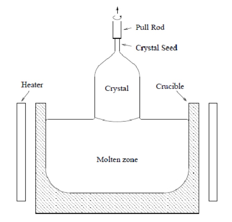 直拉法最初是由荷蘭科學(xué)家Czochralski發(fā)明的,但首先將直拉法用于單晶硅生長(zhǎng)的是Teal和Buehler,他們?cè)?950年使用石英坩堝通過(guò)直拉法生長(zhǎng)出第一根單晶硅。