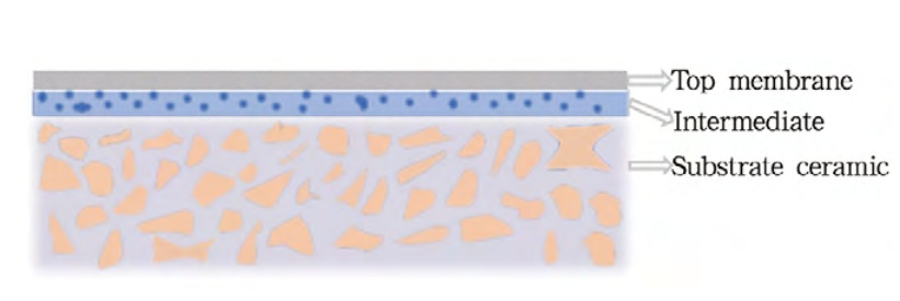 制備對(duì)稱陶瓷膜兩層結(jié)構(gòu)的原料粒徑要很相近,如果直接將小粒徑的分離膜層涂覆于支撐體上,由于分離膜層的粒徑過小,容易直接滲入支撐體中,造成支撐體孔隙堵塞,不能形成完整的小孔徑分離膜層,對(duì)膜的通透性造成不良影響,所以就需要先制備中間過渡層,再在其表面涂覆更小孔徑的分離膜層,形成三層結(jié)構(gòu)的非對(duì)稱陶瓷膜。