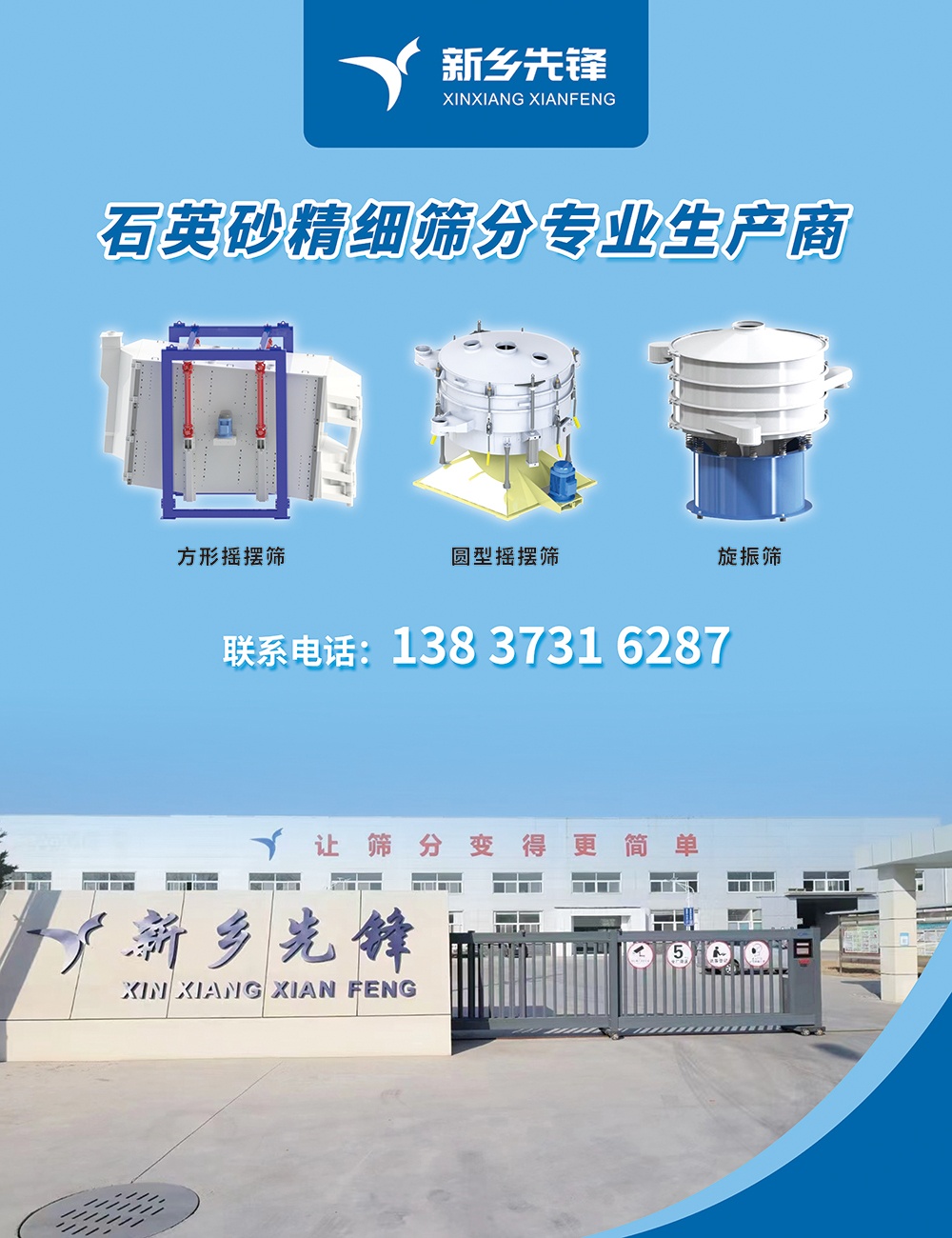 [導讀]  新鄉市先鋒振動機械與您相約鳳陽!光伏行業用石英砂技術與市場交流大會