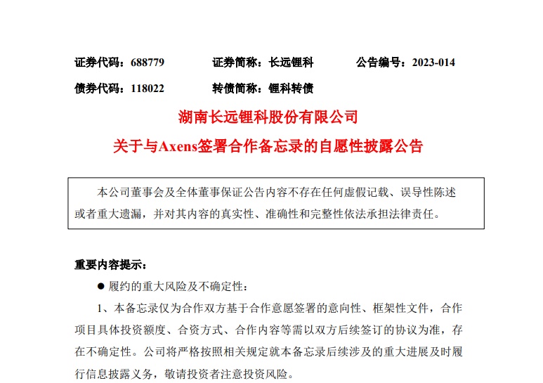 參考來(lái)源:湖南長(zhǎng)遠(yuǎn)鋰科股份有限公司 關(guān)于與Axens簽署合作備忘錄的自愿性披露公告