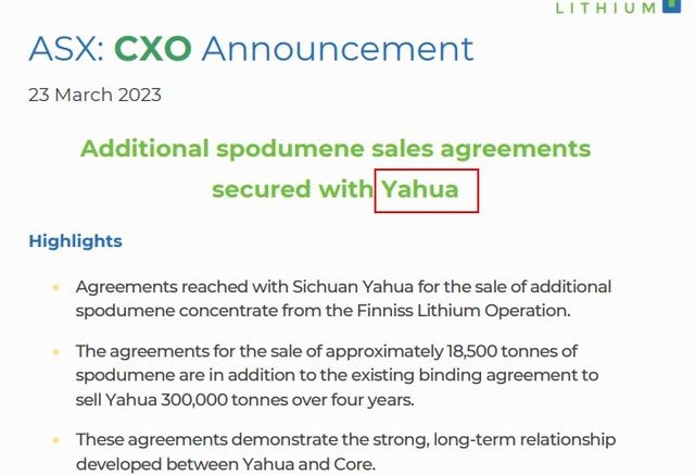 澳洲鋰礦公司Core Lithium在官網宣布,與四川雅化集團(002497)鎖定額外的鋰輝石銷售協議,四年內出售30萬噸。