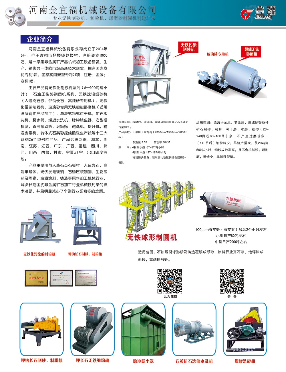 河南金宜福機械設(shè)備有限公司成立于2014年5月,位于汝州市楊樓鎮(zhèn)趙樓村,注冊資本1000萬,是一家集非金屬礦產(chǎn)品機械加工設(shè)備研發(fā)、生產(chǎn)、銷售為一體的市級高新技術(shù)企業(yè),擁有國家發(fā)明專利項,國家實用新型專利21項,注冊:金誠;商標1項。