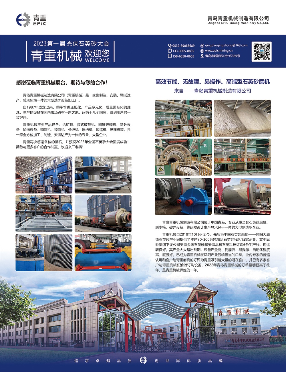 中國粉體網將于2023年4月21日在安徽鳳陽舉辦“第一屆光伏行業用石英砂技術與市場交流大會”,青重機械制造邀您一起參加。