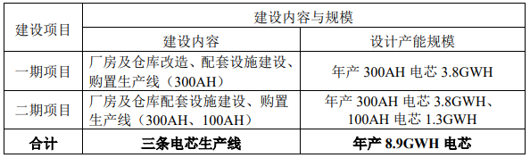 根據規劃,該生產基地將建設三條方形磷酸鐵鋰電池生產線,初期擬生產50AH、100AH、300AH三個型號,建成達產后將形成年產8.9GWH的儲能電池產能規模。