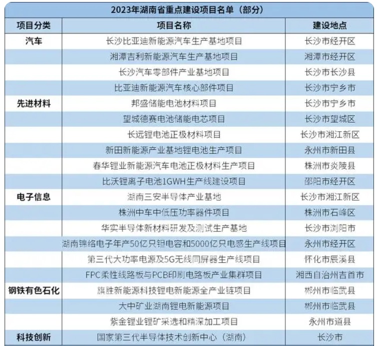 中國粉體網訊 近日,湖南省發改委發布2023年省重點建設項目名單,共鋪排項目324個,總投資21342.5億元,年度計劃投資4616.8億元。根據項目名單顯示,2023年,湖南省將重點鋪排42個電子信息制造業項目,總投資達1385億元,主要涵蓋先進計算、新型顯示、能源電子、半導體等領域。