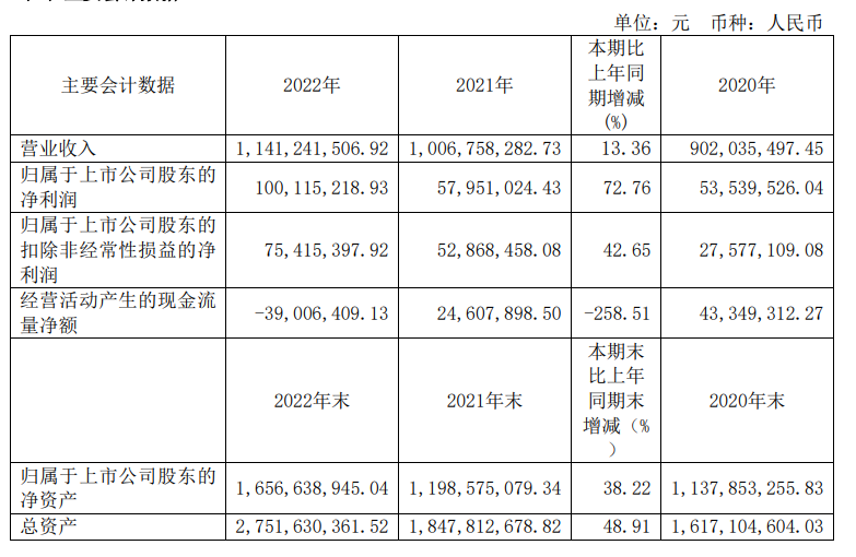 中國粉體網訊 旭光電子4月11日晚發布2022年年報,公司2022年實現營業收入11.41億元,同比增長13.36%;實現歸屬于上市公司股東的凈利潤1億元,同比增長72.76%。