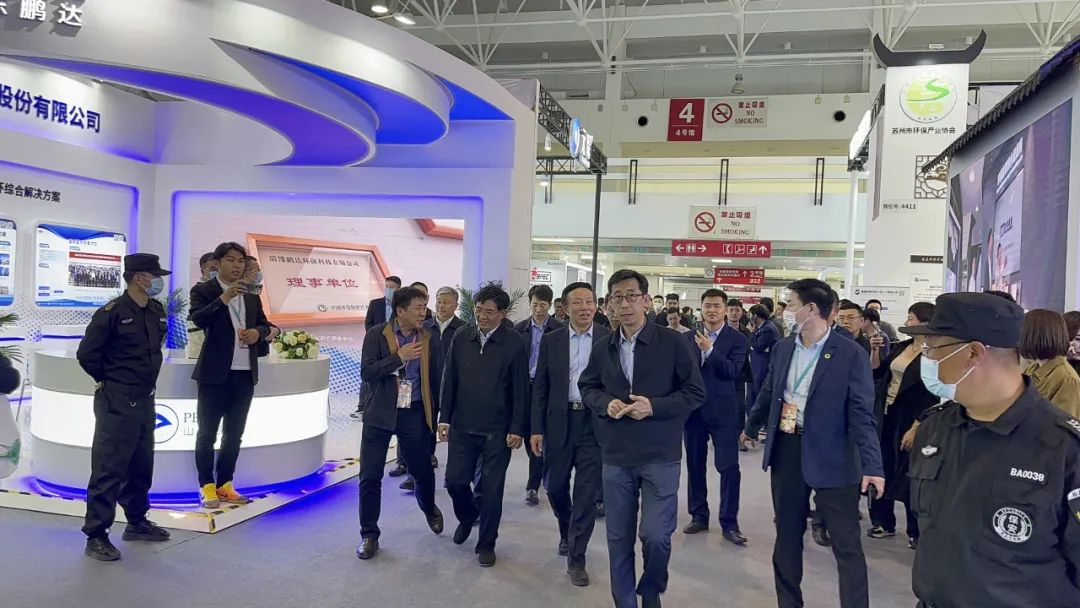 中國環境保護產業協會會長郭承站攜院士參觀展位