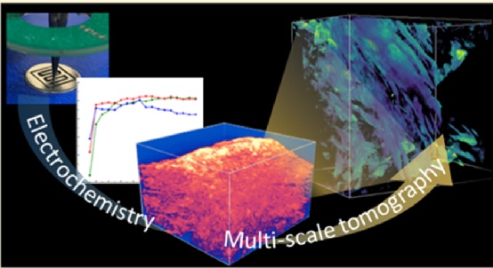 納米層析顯示,盡管WIS-GPE可以幫助保持3D打印電極的整體結構,但與使用液體WIS電解質的電池相比,顆粒在循環過程中似乎降解得更快,導致使用WIS-GPE的電池的庫倫效應更低。因此,需要進一步開發可打印的墨水和整個3D打印電池架構。基于微斷層掃描的三維形態分析,加上納米斷層掃描作為多尺度表征,揭示了與打印過程有關的打印電極的微觀結構和顆粒排列。