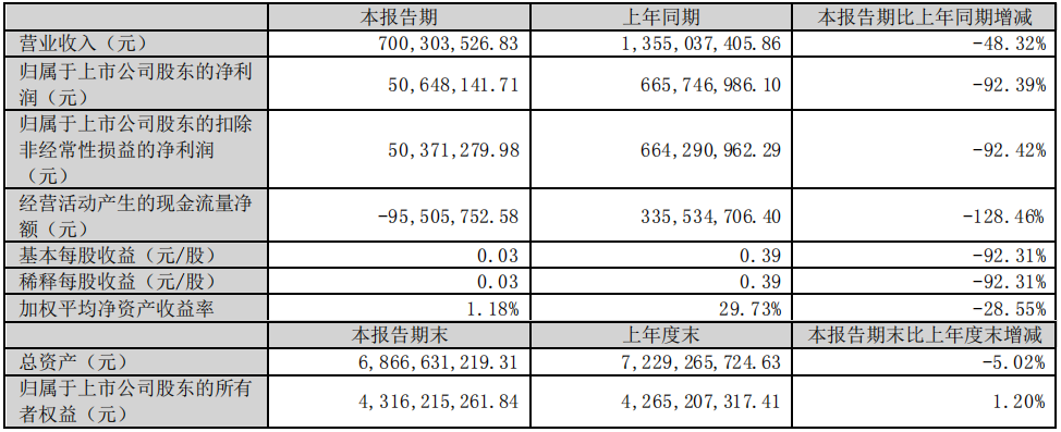 4月24日,江特電機公告,一季度營業收入7億元,同比減少48.32%;凈利潤5064.8萬元,同比下降92.39%,利潤下降的主要原因為鋰鹽產品價格下跌,毛利下降所致。