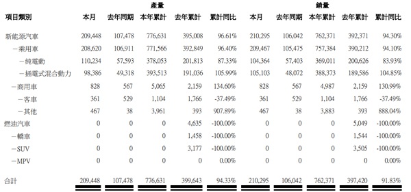 4月,比亞迪新能源乘用車銷售209,467輛,同比增長98.6%。比亞迪汽車王朝|海洋銷售198,941輛,同比增長88.6%。騰勢汽車銷售10,526輛。