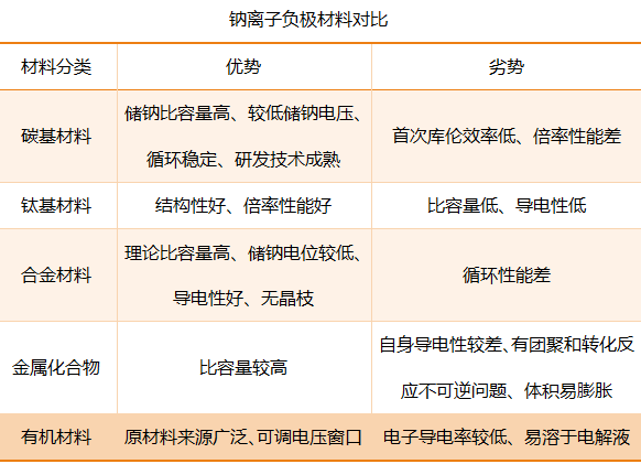 目前關于鈉電池負極材料的選擇主要有碳基、鈦基、有機類和合金類負極材料等。