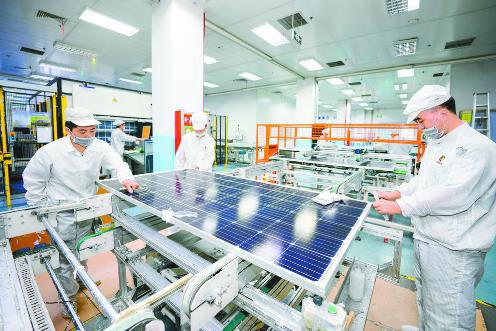 4月18日,天合光能股份有限公司(以下簡稱“天合光能”)第一片至尊670W系列超高功率組件在南川工業(yè)園區(qū)成功下線,宣告天合光能青海大基地年產(chǎn)15GW光伏組件項目首期5GW項目正式建成投產(chǎn),標(biāo)志著西寧市在超高功率組件領(lǐng)域?qū)崿F(xiàn)“零”的突破。