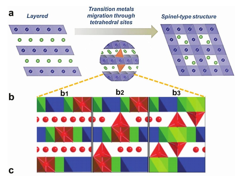 圖4.a)鋰離子正極材料基本老化機制綜述;b)鋰電正極材料各種降解機制之間的邏輯關系示意圖。