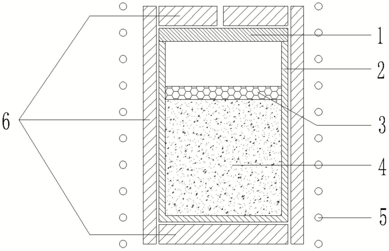 1、坩堝上蓋,2、坩堝,3、除氮物質,4、碳、硅混合物,5、感應線圈,6、保溫氈。