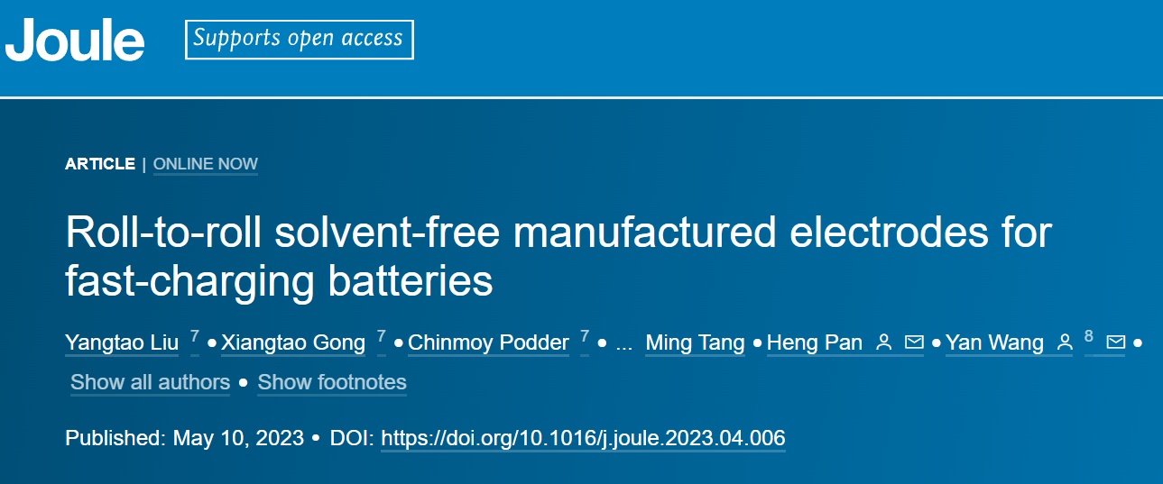 Yangtao Liu et al,Roll-to-roll solvent-free manufactured electrodes for fast-charging batteries