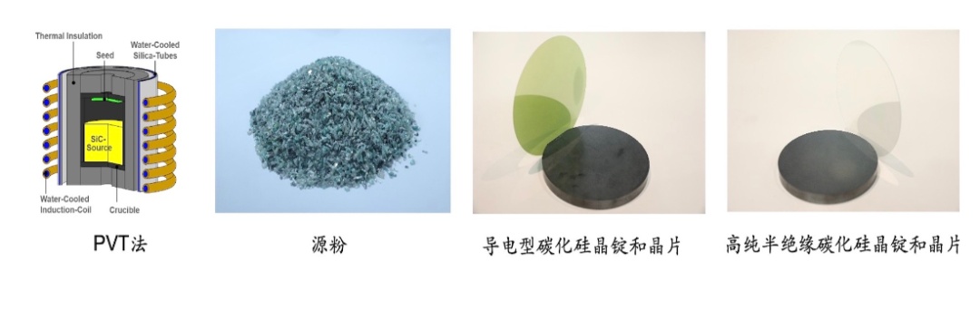 采用物理氣相傳輸法(PVT)開展大尺寸(4/6/8英寸)高純半絕緣和導電型碳化硅單晶生長試驗,嚴格控制多型比例、微管和位錯密度、結晶質(zhì)量、碳包裹體和電阻率等缺陷控制技術指標,研究摻雜調(diào)控以提高n型和p型摻雜效率,提升增大單晶尺寸、增加晶錠長度、提高生長效率和原材料利用率等技術水平,研發(fā)生產(chǎn)出具有行業(yè)領先水平的高質(zhì)量碳化硅晶錠。