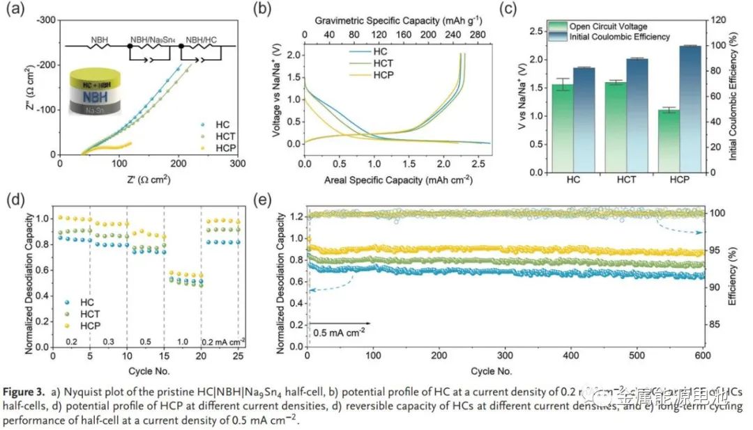 2、因此,與半電池結(jié)構(gòu)的熱處理HC(90%)或原始HC(83%)相比,預(yù)處理HC表現(xiàn)出出色的ICE(>99%)。