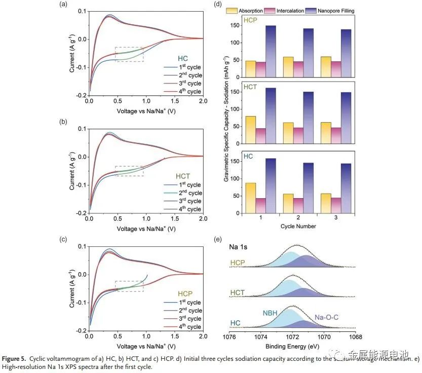 2、NaBH4的熱分解在HC顆粒表面產(chǎn)生金屬鈉,這被證明是補(bǔ)償固有的不可逆鈉儲(chǔ)存位點(diǎn)所必需的。因此,熱處理后的HC將ICE從83%提高到90%,而預(yù)處理后的HC達(dá)到了99%。