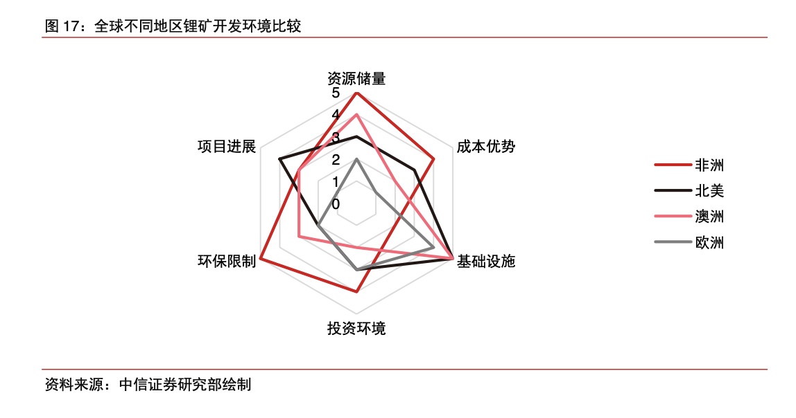 國信證券研報顯示,非洲當地因受制于經濟發展萎靡與礦業技術長期落后等問題,因此前期勘探和投資嚴重不足,目前非洲地區仍僅Bikita一座在產鋰礦,多數項目還未建設完成。
