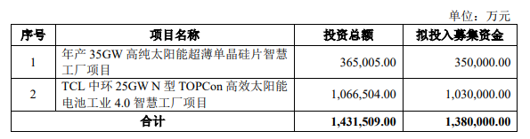 中國粉體網訊 5月29日,TCL中環發布公告,擬向不特定對象發行可轉換公司債券,本次可轉債發行總額不超過人民幣1,380,000萬元(含1,380,000萬元),扣除發行費用后將全部用于以下項目: