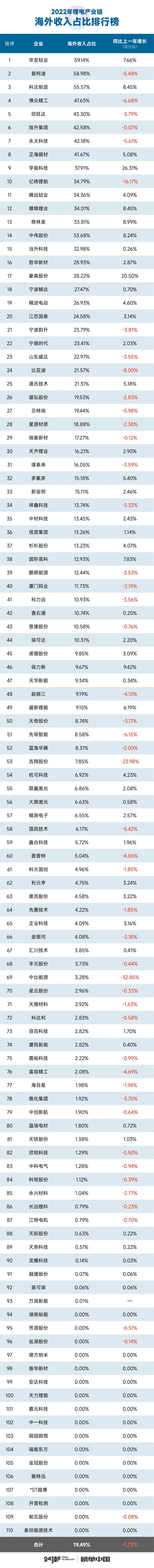 比如據24潮團隊統計,2022年110家鋰電企業海外收入合計為3755.14億元,約同比增長78%,而同期他們總營業收入為19264億元,同比增長93.78%;2022年,這110家鋰電企業海外收入占營業收入的比例僅為19.49%,同比上一年下降了1.73個百分點。可見,國內市場仍是其主要增長引擎。