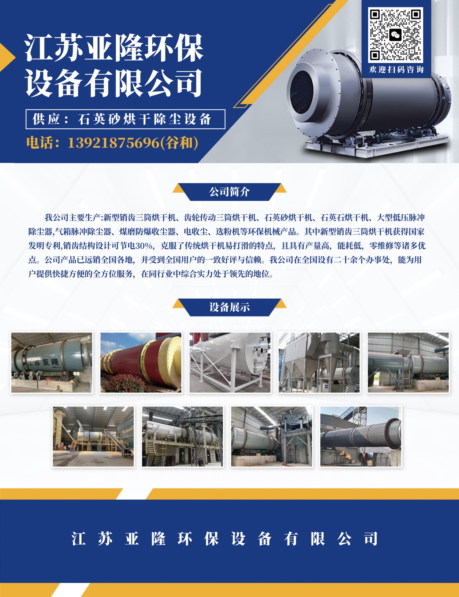 由中國粉體網主辦的“2023第三屆全國板材用石英砂供需洽談會”將于7月19號在山東臨沂舉辦,江蘇亞隆環保設備有限公司邀您一同參加。