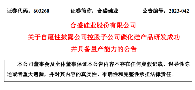 中國粉體網訊 日前,合盛硅業發布公告,公司控股子公司寧波合盛新材近日成功研發碳化硅半導體材料并具備量產能力。