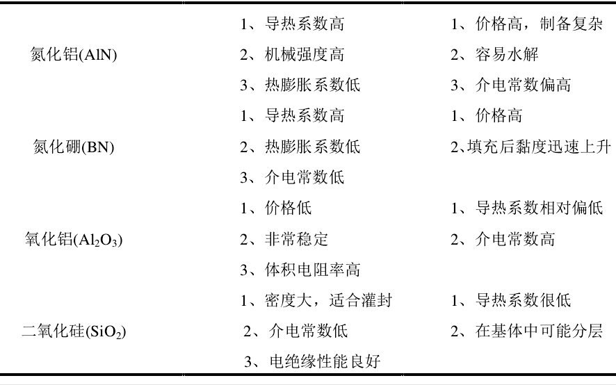 導熱絕緣層的導熱性主要取決于其中的填料,可供選擇的填料有Al2O3、MgO、ZnO、BeO、h-BN、Si3N4以及AlN等。其中,Al2O3雖然熱導率不高,但是其球形度好,容易在有機樹脂中分散,適宜高填充量,并且價格便宜,因此應用較多。