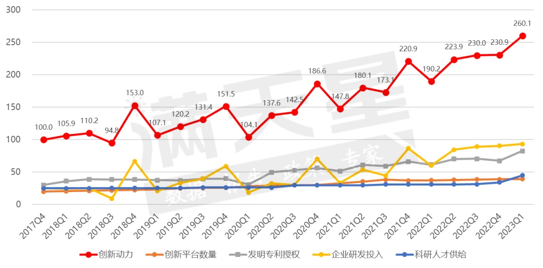 圖5 2017Q4-2023Q1中國鋰電產業發展指數創新動力維度指標值