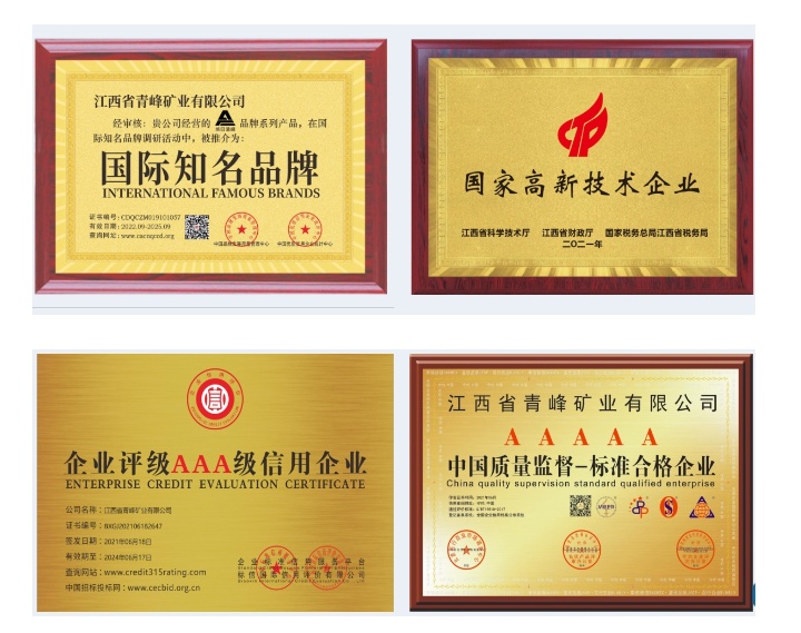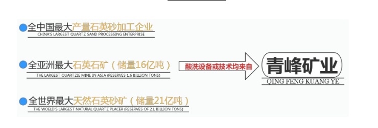 國際知名品牌江西省青峰礦業(yè)有限公司是國內(nèi)首家專業(yè)從事石英石原礦、石英砂環(huán)保酸洗設(shè)備制造與石英砂酸洗提純技術(shù)研發(fā)的科技型企業(yè)。由我公司自主研發(fā)的國家專利產(chǎn)品“非金屬礦石除鐵酸洗設(shè)備”為國內(nèi)外眾多石英加工企業(yè)解決了石英砂除鐵增白難的問題,并授予為“中國綠色環(huán)保設(shè)備”“全國節(jié)能綠色環(huán)保推廣產(chǎn)品”,得到了中科院、中國非金屬研究院等有關(guān)部門領(lǐng)導(dǎo)的高度重視。我公司共獲得“新型電加熱在酸洗中的應(yīng)用”等20余項國家專利。