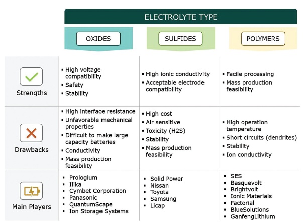 【圖2】用于制造固態電池的主要不同電解質類型的優點和缺點。