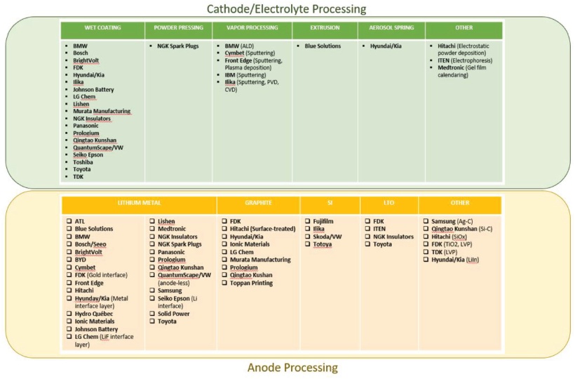 【圖5】根據目前用于加工電極和電解液的制造技術,固態電池(SSB)制造方面的主要確定工業參與者。