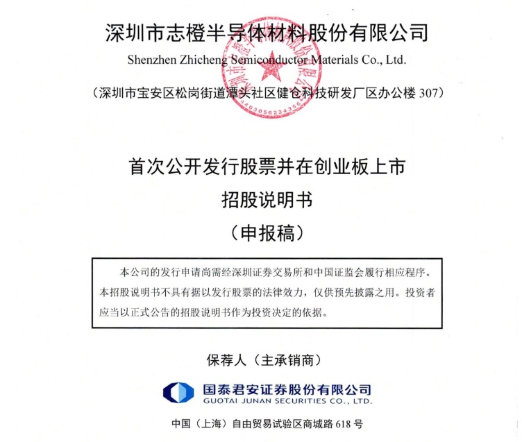 中國粉體網訊 6月27日,深圳市志橙半導體材料股份有限公司(以下簡稱:志橙半導體)在深市創業板提交招股書申報稿,保薦人為國泰君安。志橙半導體本次擬募資8億元,用于SiC材料研發制造總部項目、SiC材料研發項目、發展和科技儲備資金。