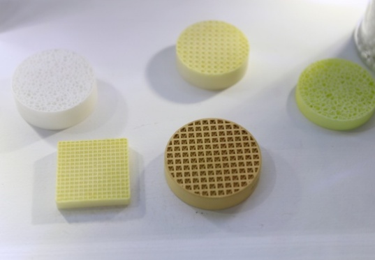 蜂窩陶瓷載體是一種具有高目數、大比表面積、高抗壓強度、低熱膨脹系數、優異抗熱沖擊性能的陶瓷載體,常用堇青石和碳化硅材質,廣泛應用于車用尾氣凈化處理的催化轉化器,對汽車排放廢氣中的有害氣體進行催化轉化、固態顆粒物進行過濾攔截,滿足日趨嚴苛的排放法規。