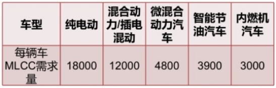 不同車型對MLCC的需求量