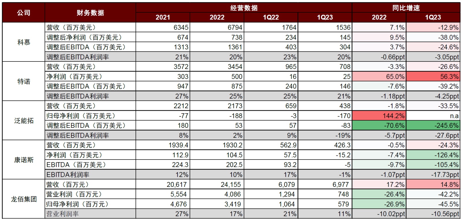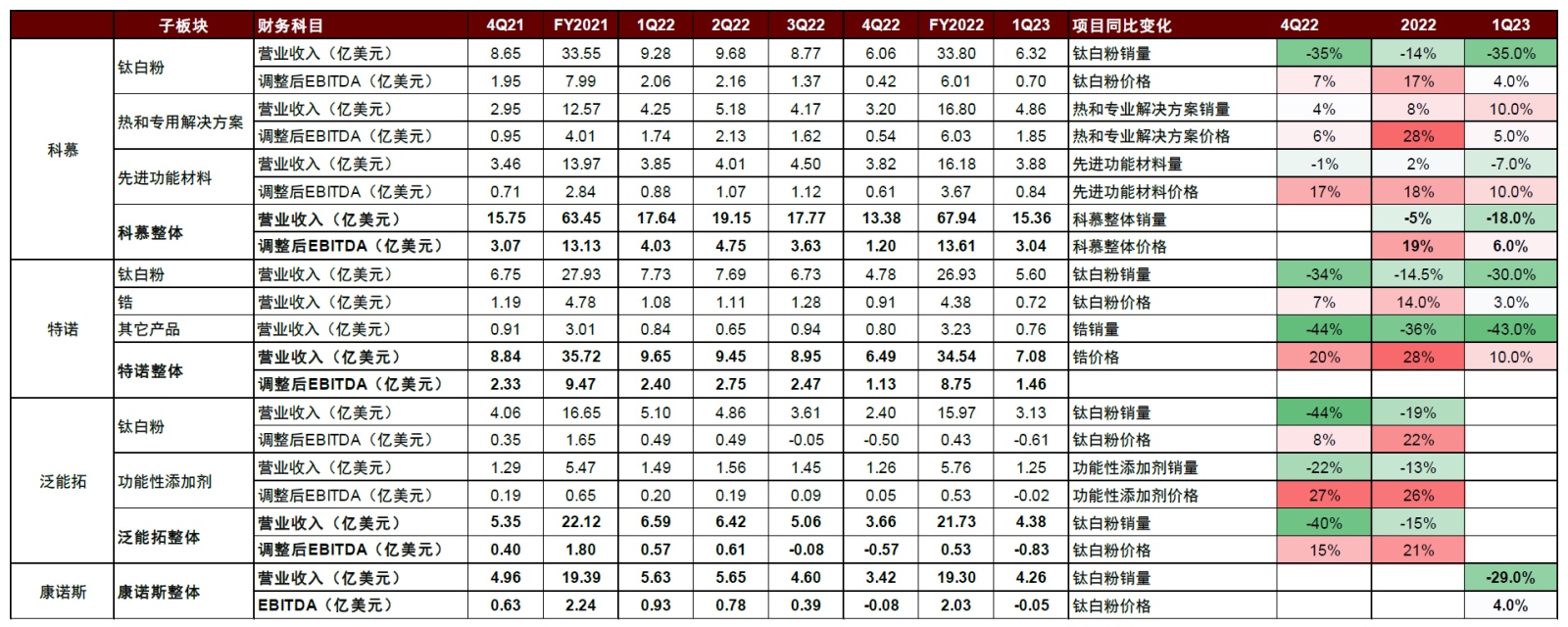 全球主要鈦白粉企業2022年和1Q23經營情況回顧