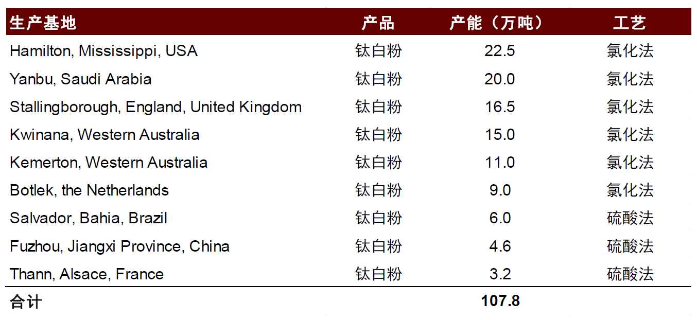 圖表2:2022年海外主要鈦白粉生產企業產能