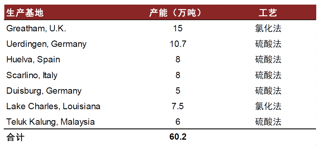 圖表12:特諾主要生產基地及鈦白粉產能(2022年)