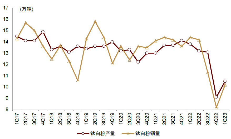 國內鈦白粉價格:2H22不斷下滑,1Q23環比上漲