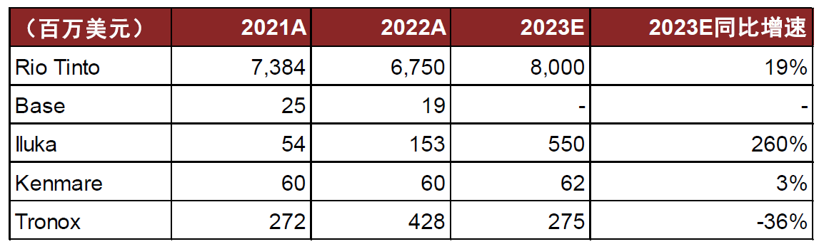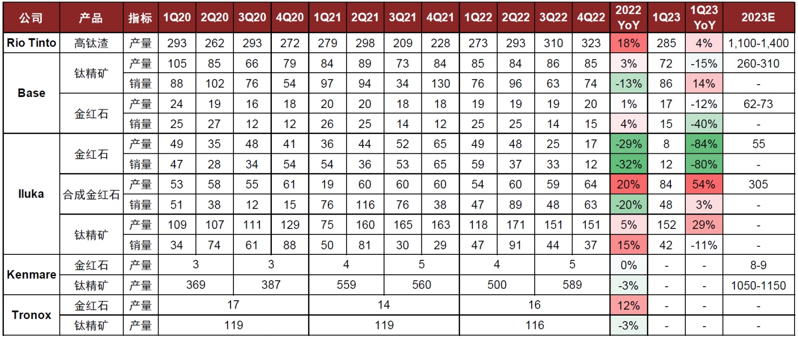 全球主要鈦礦企業2022年和1Q23經營情況回顧