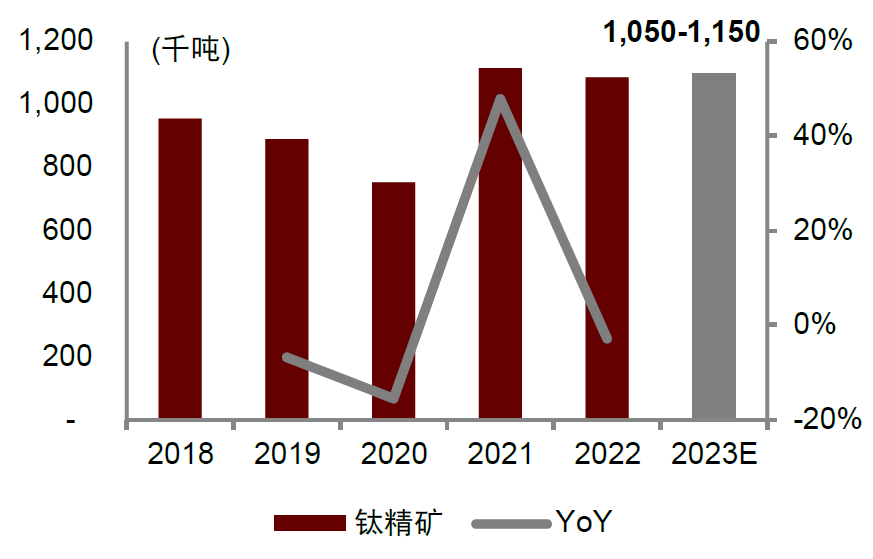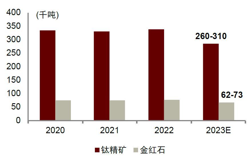圖表22:主要鈦礦生產企業季度產量及2023年產量指引(單位:千噸)