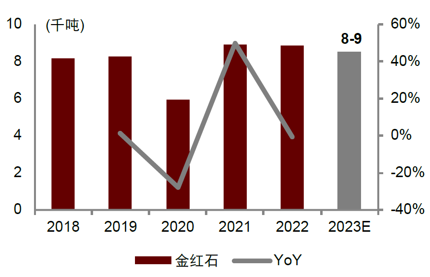► Kenmare:2022年鈦精礦產量同比微降,平均價格創歷史新高。2022年公司重礦原礦產量增長2%至158.62萬噸;產品方面,2022年鈦鐵礦產量下降3%至108.83萬噸,金紅石產量為0.89萬噸,與2021年持平。Kenmare預計2023年鈦鐵礦產量將在105萬噸至115萬噸;金紅石產量在0.8-0.9萬噸。