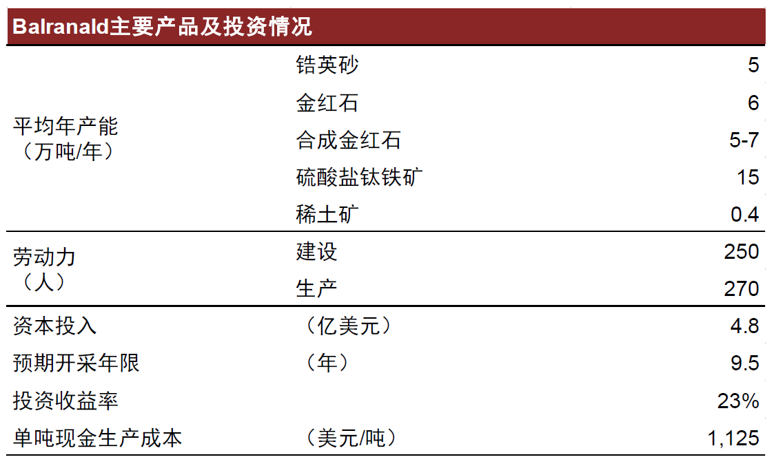 圖表35:Iluka公司Balranald項目產品及投資情況