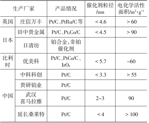 國內外燃料電池催化劑產品對比